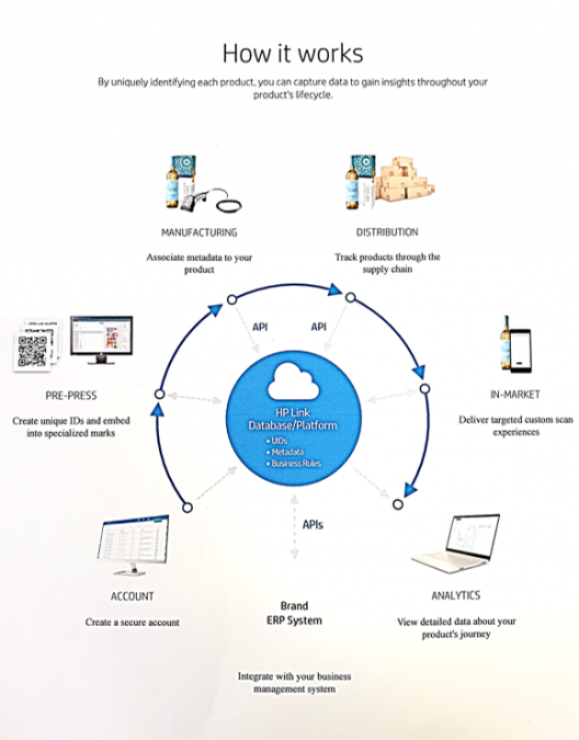The addition of QR code technology (linkReader by HP) allows for traceability from the Filling plant to the customer with the use of standard free apps for the scanning of QR coding and URL information embedded in the seal. (www.linkcreationsstudio.com)